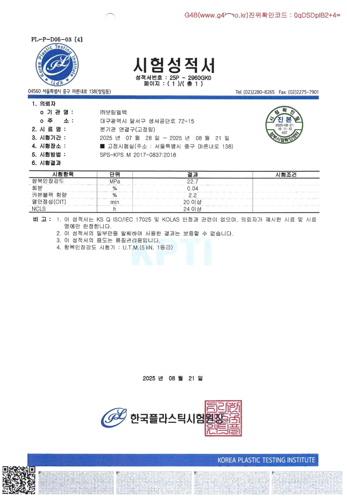 커넥터 성적서