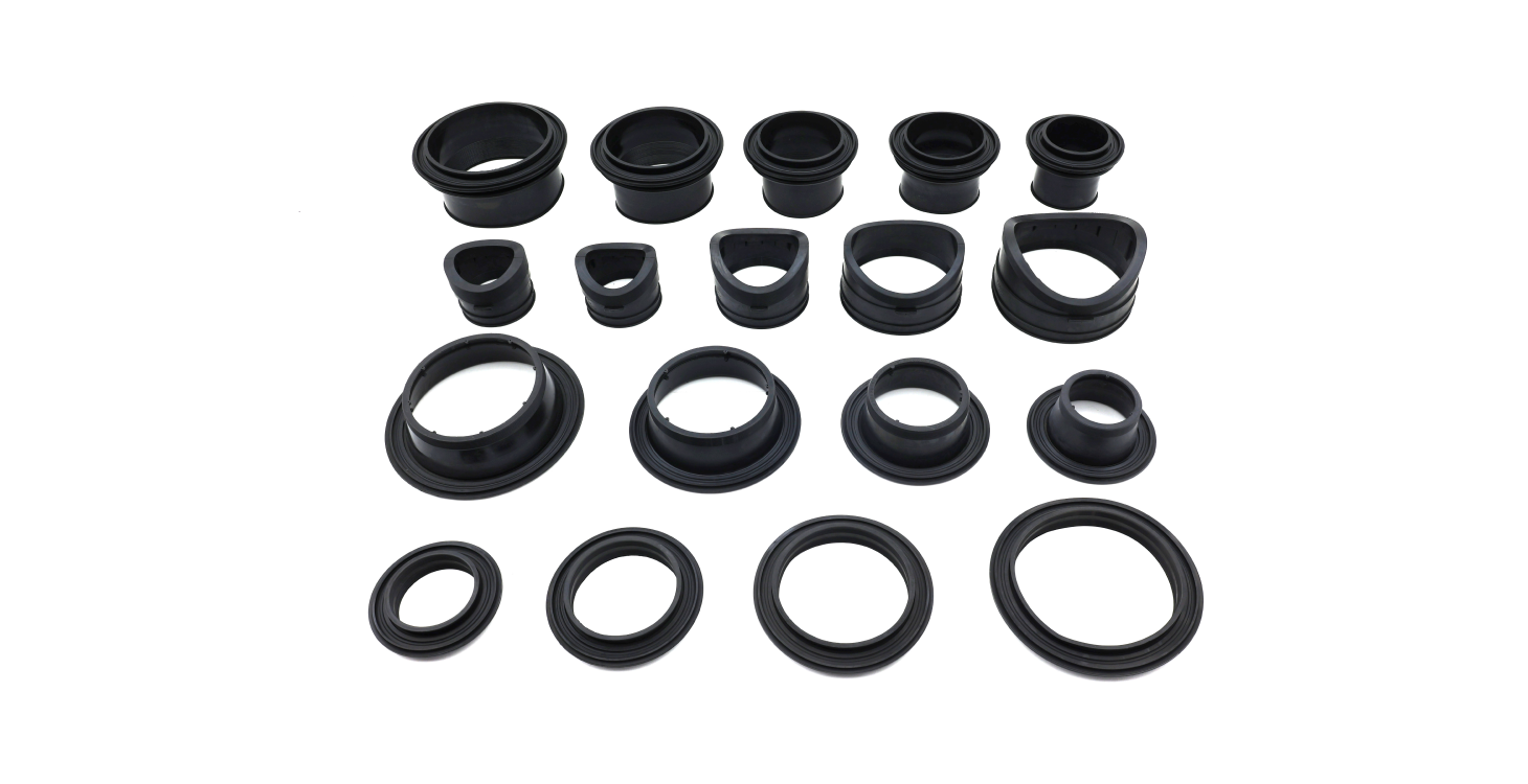 고무커넥터는 맨홀을 제작할 때 맨홀 접속구에 장착되어 일체형으로 생산되며 시공 현장에서는 하수관을 커넥터에 삽입 후 체결밴드만 체결함으로써 시공이 종료되어 시공성이 매우 뛰어나며, 하수관 연결부의 수밀성 및 내진성, 내구성을 획기적으로 향상시킨 제품입니다.